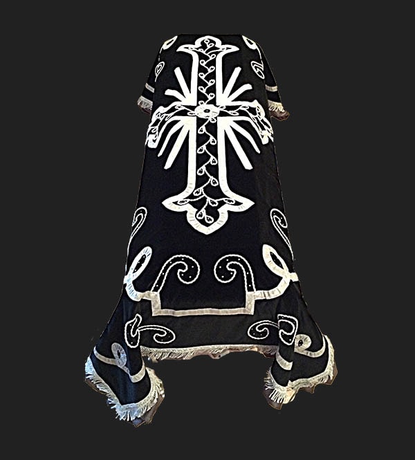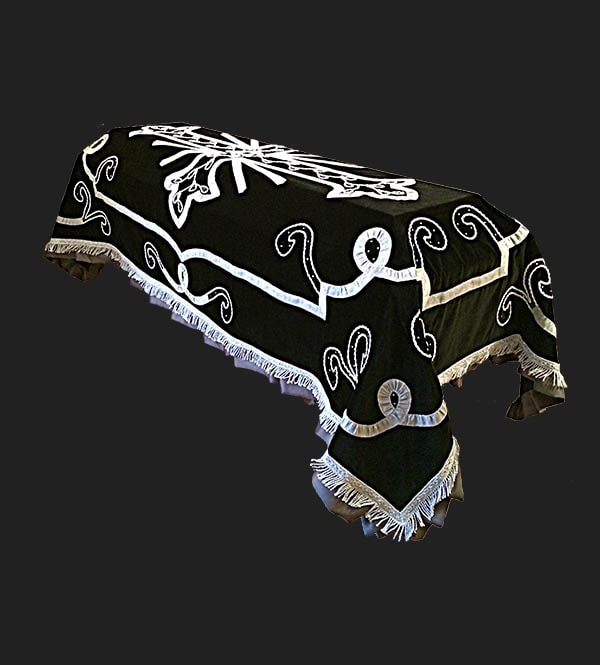 Pano Funerário de Veludo, decorado com galões dourados ou prateados, com aplicação de pedras ou tachas. Presente artigo poderá ser vendido em diferentes cores à escolha do cliente.