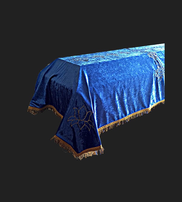 Pano Funerário de Veludine, decorado com bordados prateados ou dourados, com aplicação de pedras ou tachas. Artigo poderá ser vendido em diferentes cores à escolha do cliente.